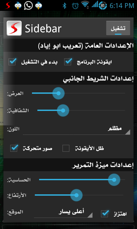 حصريا تعريب برنامج الشريط الجانبي مثل نوت تو واس ثري Sidebar 2.5.5.2
